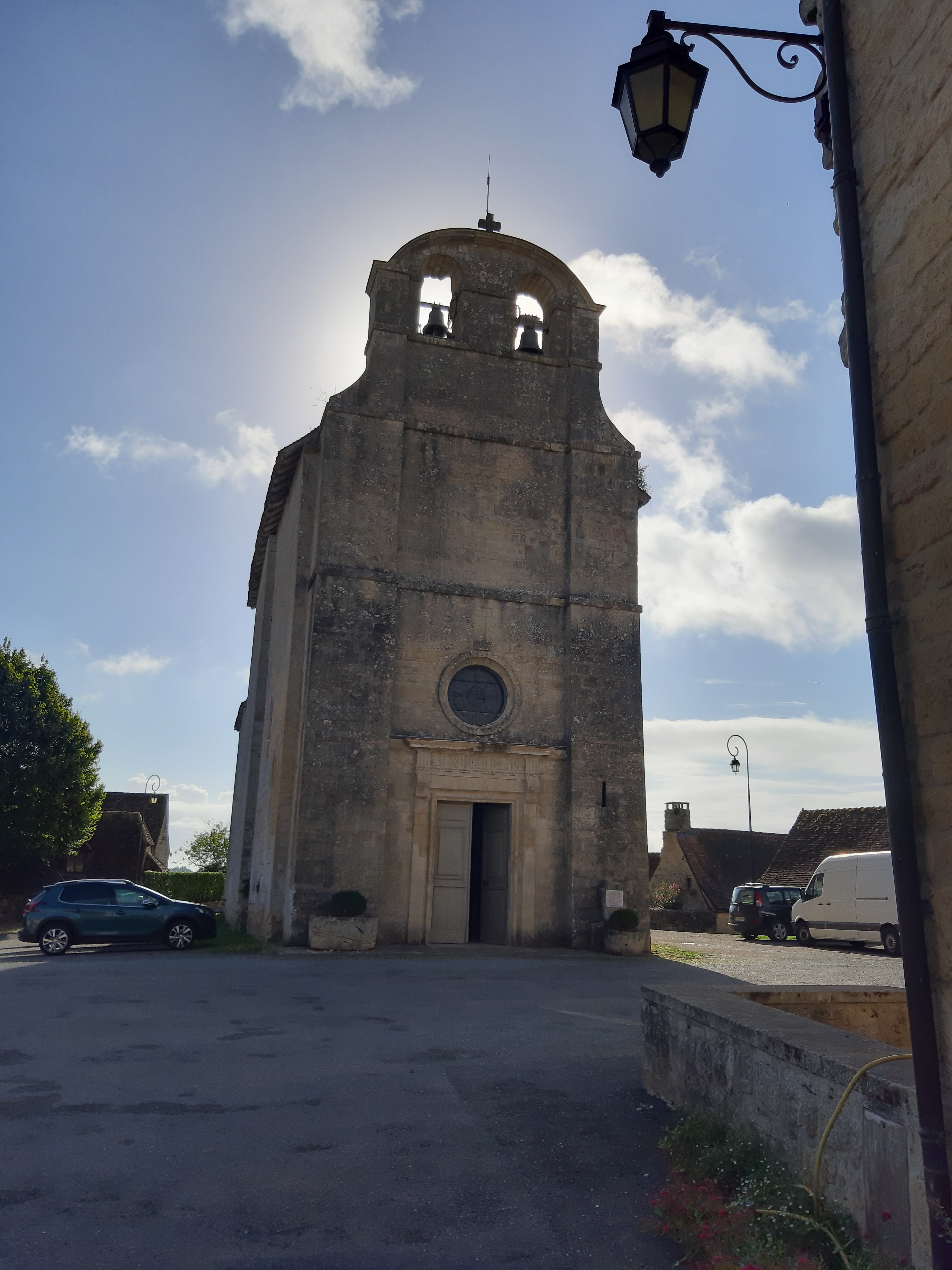 Posté le 01/06/2019 à 05:47"Un petit détour s'impose pour découvrir ce village typique du Périgord noir. Un point d'information sous la seule responsabilité des visiteurs les attend, proposant de la lecture et de la documentation. Des toilettes y sont également accessibles. La couleur orange des maisons et des monuments est due à la présence d'argile dans la roche calcaire, la rendant gélive (sensibilité au gel). Deux monuments classés par les M.H. sont situés sur la place du village. 1/ Une croix sculptée du 14ème ou 15ème siècles, posée sur un socle et une colonne, ces deux éléments ont été refaits en 1883. 2/ une église fortifiée, du 12ème siècle, qui servit au seigneur de La Jalaye pour s'opposer violemment aux Anglais pendant la guerre de cents ans (il y perdit un bras). Elle subit aussi des dommages durant les guerres des religions, le chœur fut repris au 15ème siècle et le clocher au 18ème siècle. Des meurtrières étaient disposées à l'origine, à la place des vitraux d'aujourd'hui, des ouvertures ayant été pratiquées au 17ème siècle, procurant aujourd'hui un éclairage fort agréable dans cette église d'une grande simplicité."